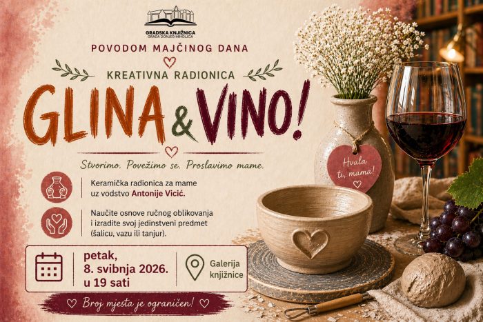 Gradska knjižnica Grada Donjeg Miholjca poziva vas na promociju knjige Blank autora Feđe Štukana, koja će se održati u srijedu, 6. svibnja 2026., s početkom u 19:00 sati na galeriji Knjižnice. U ratnom Sarajevu, gdje su snajperi i granate postali svakodnevica, mladi Feđa Štukan zapucao je na straži na neprijateljskog vojnika snajperom i, nekom ludom […]