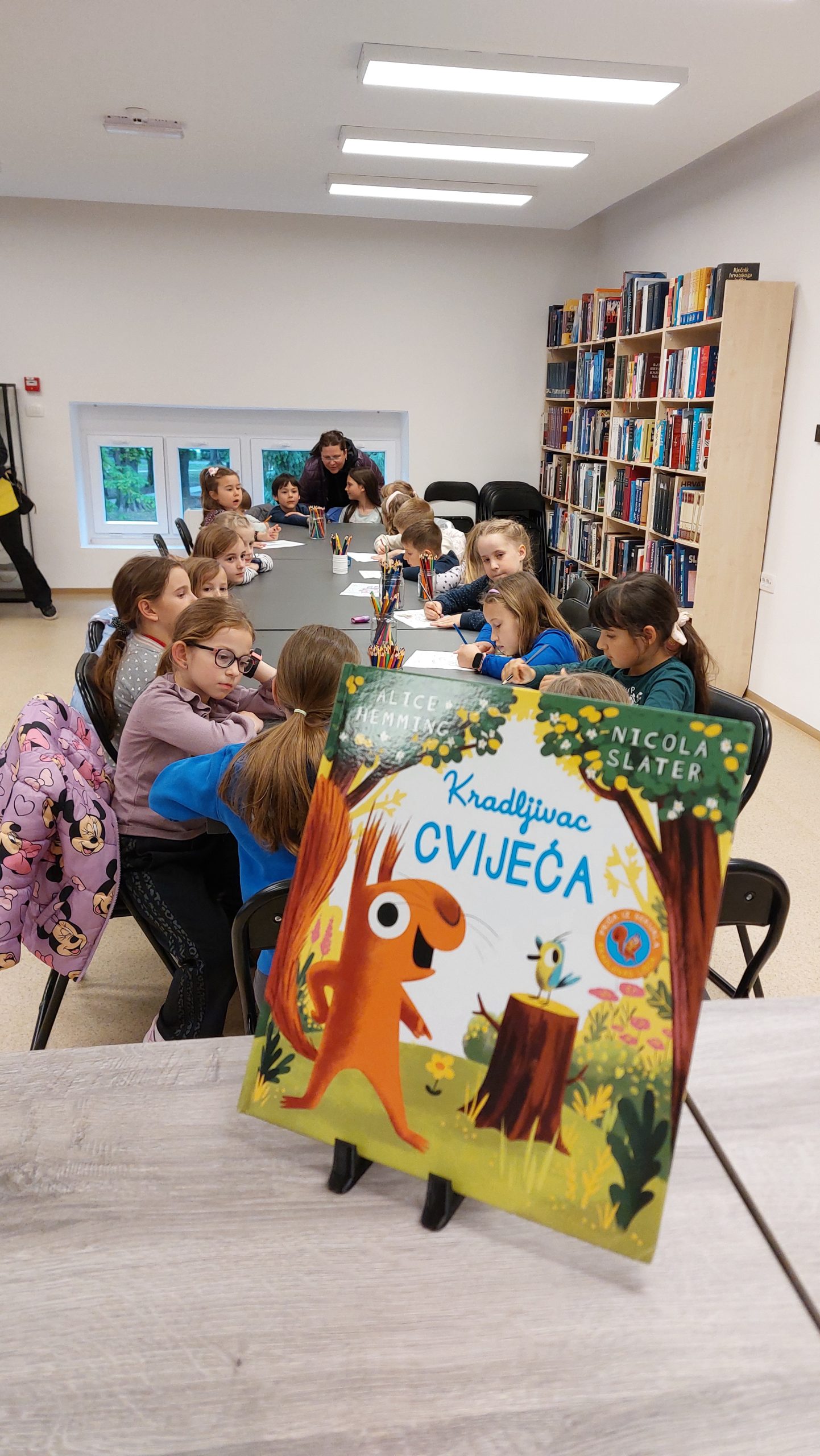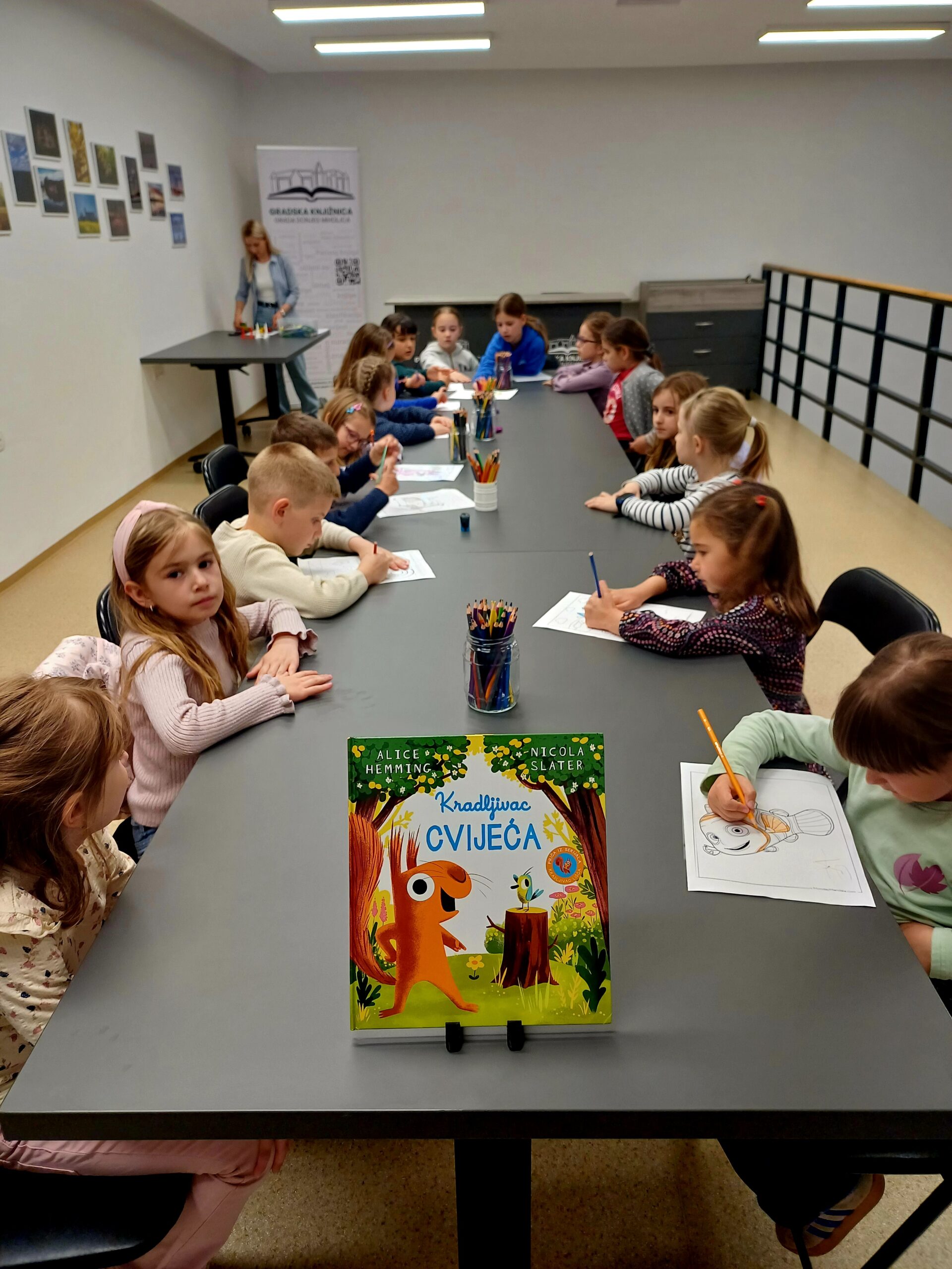 U knjižnici je u utorak, 14. travnja održana prva proljetna pričaonica i kreativna radionica, koja je okupila velik broj djece. Uz zanimljivu slikovnicu Kradljivac cvijeća, koji prati jednu vjevericu u njenom istraživanju kutka šume u koji je došlo proljeće. Djeca su s velikim zanimanjem slušala priču, a nakon toga pokazala su svoju kreativnost kroz likovnu aktivnost. Vrijedni mališani bojali su vjevericu – glavnog lika slikovnice te izrađivale šareno cvijeće za nju. Rezultat su prekrasni radovi, nasmiješena lica djece i želja za još pričaonica i radionica u knjižnici.