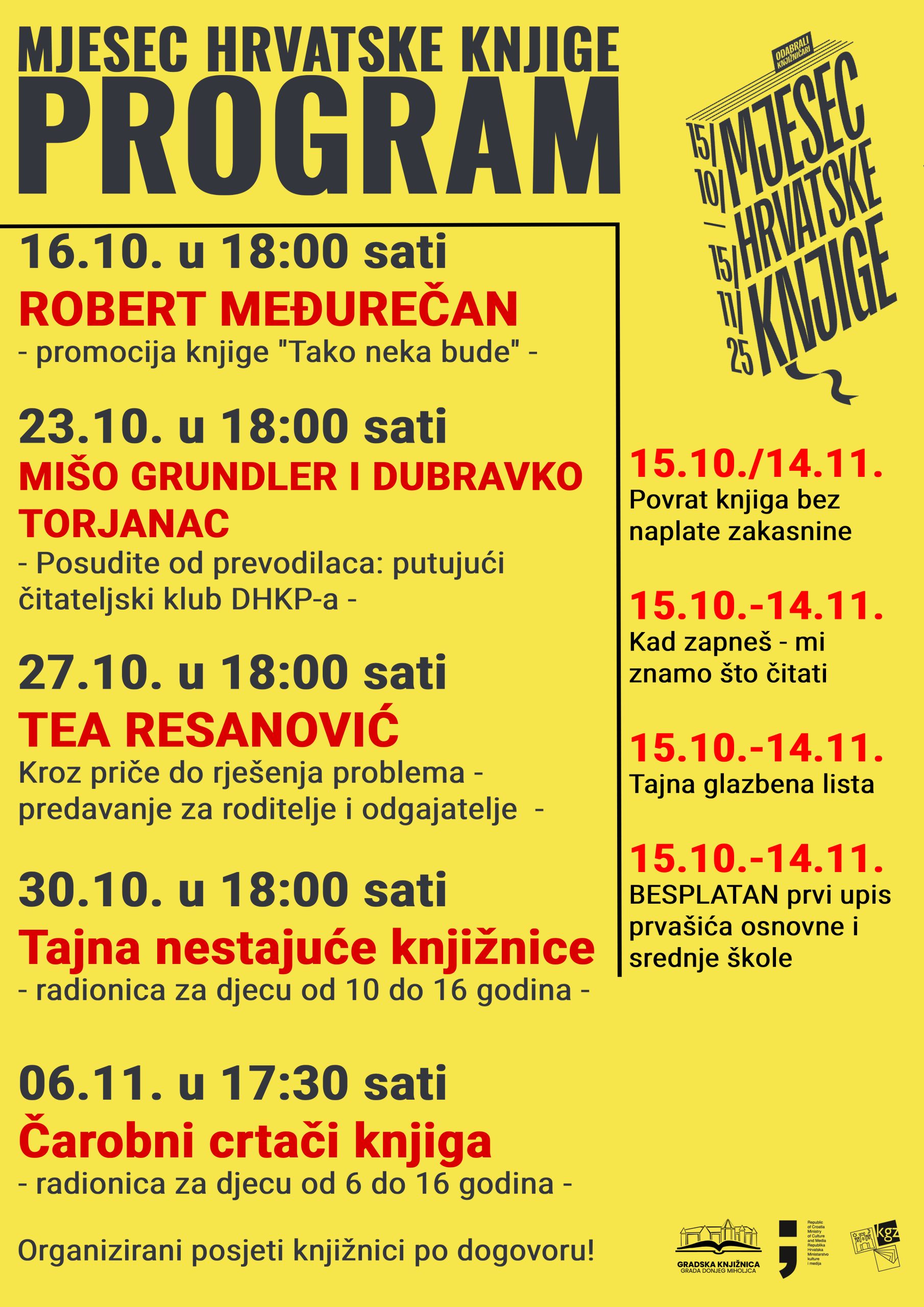 Tijekom razdoblja od 15. listopada do 15. studenoga, u našoj knjižnici očekuju vas posebne preporuke, izložbe omiljenih naslova naših knjižničara, radionice i druženja s knjigom.