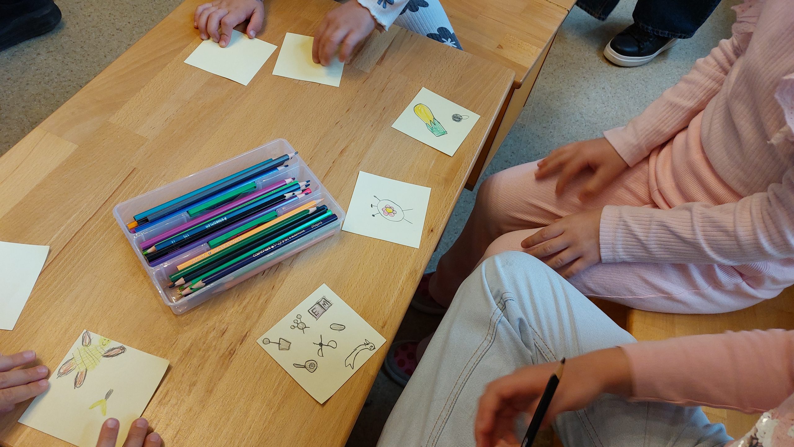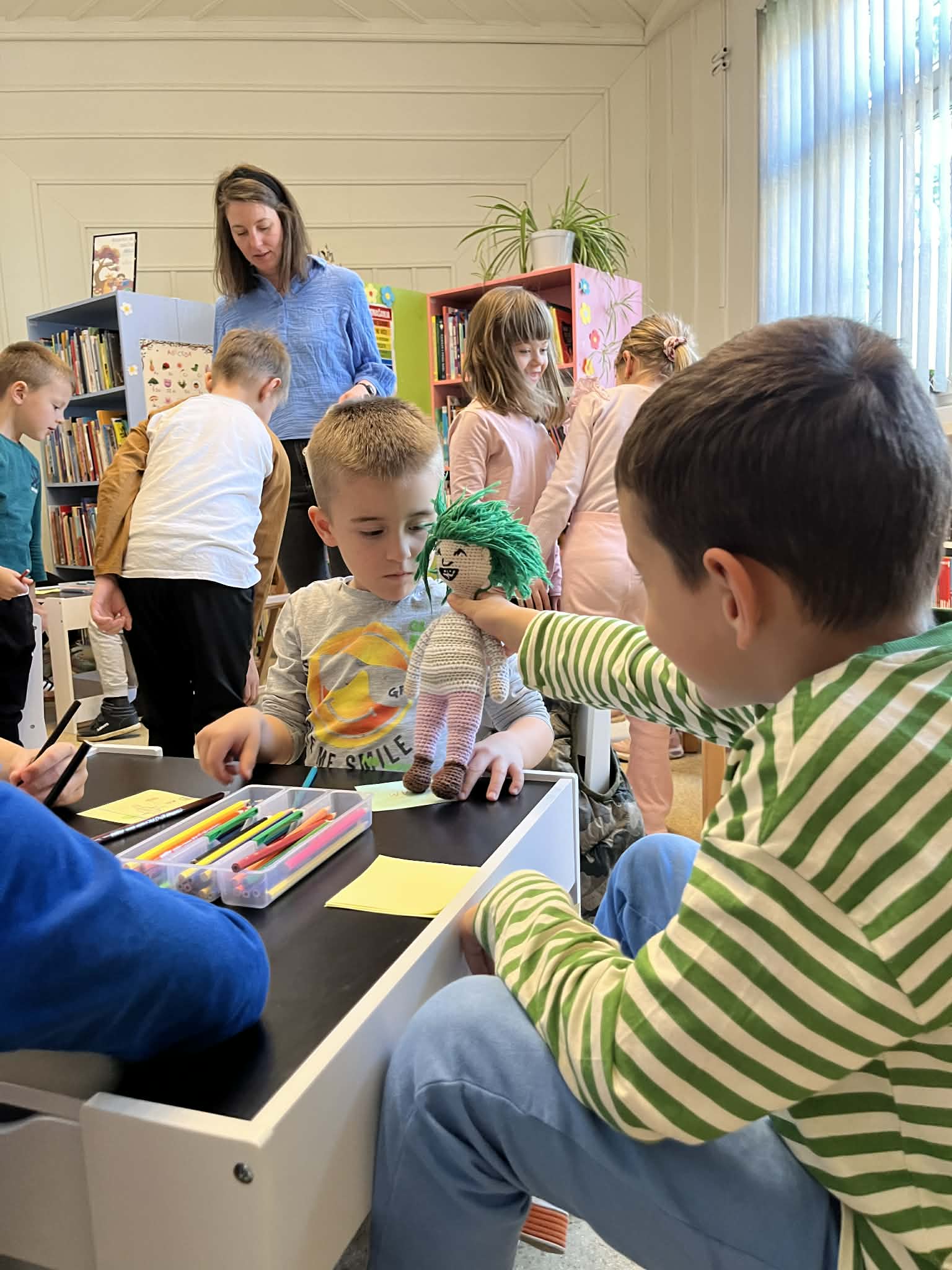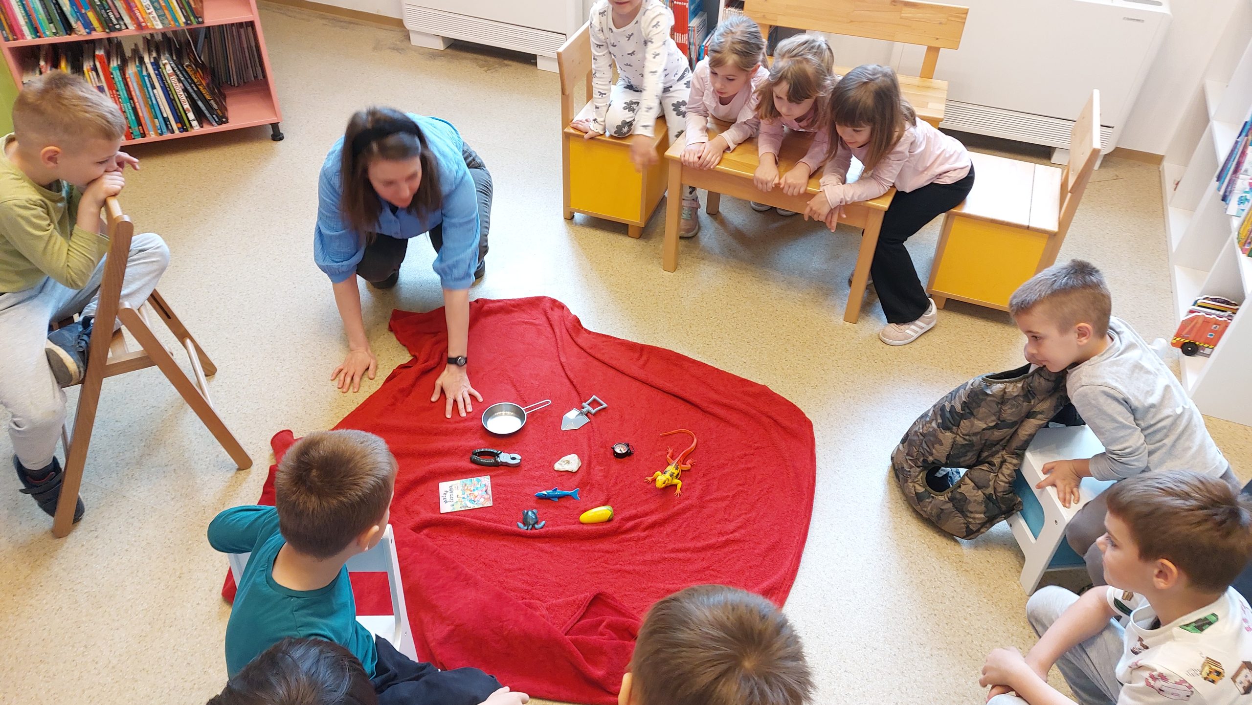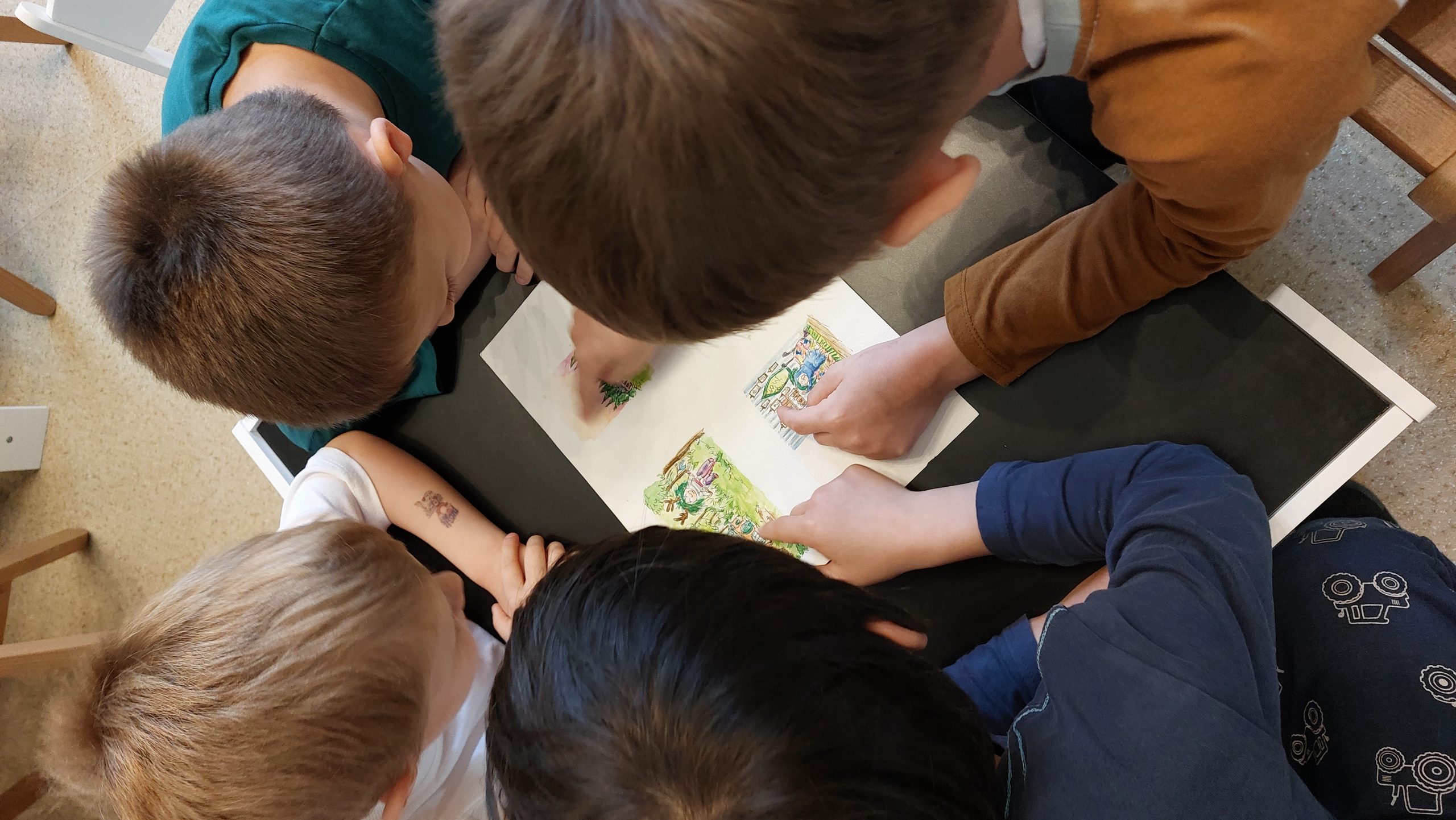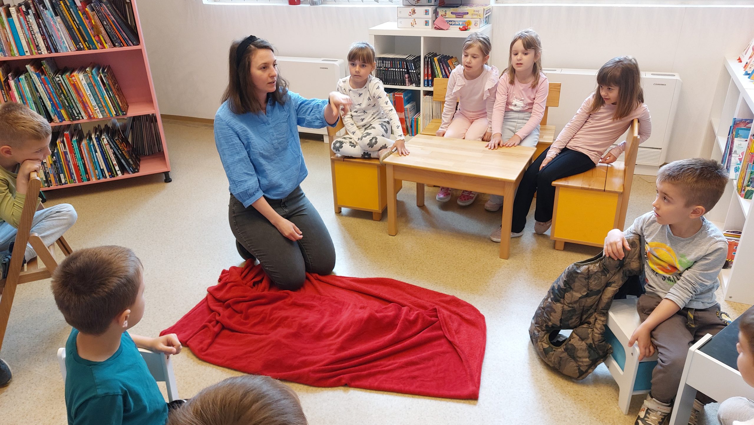 Djeca predškolske skupine „Ježići“ na početku susreta saznala su kako nastaje jedna slikovnica – od prve skice, preko ilustracija, pa sve do tiska prave slikovnice – čime su imala priliku zaviriti u svijet stvaranja priča.