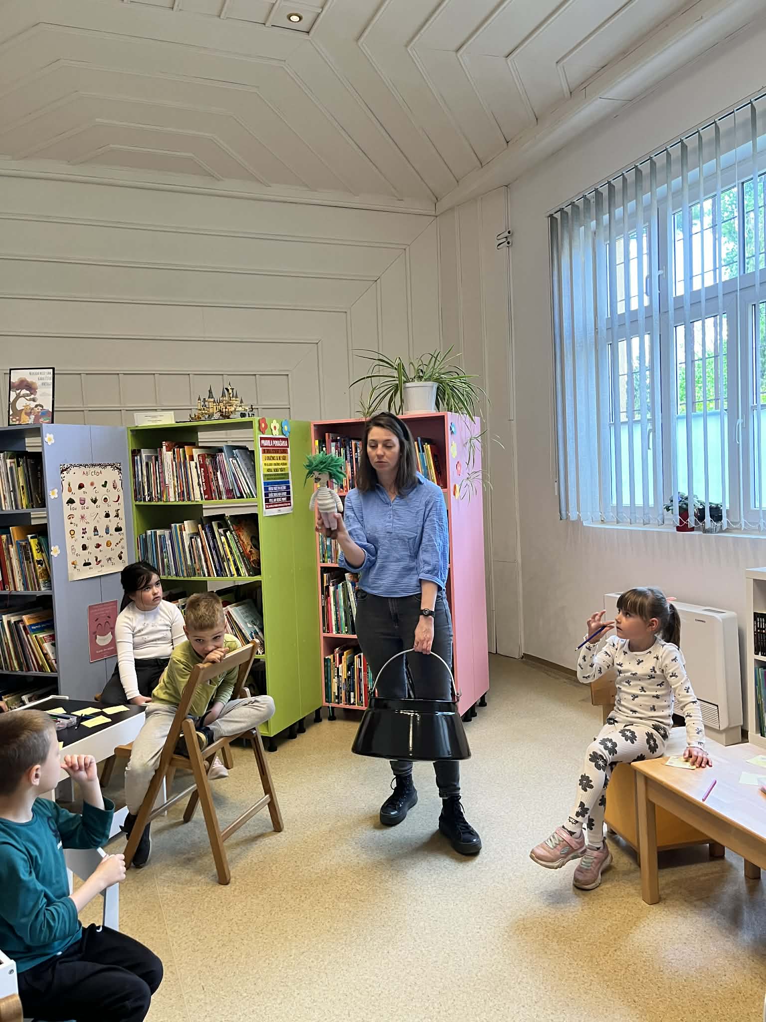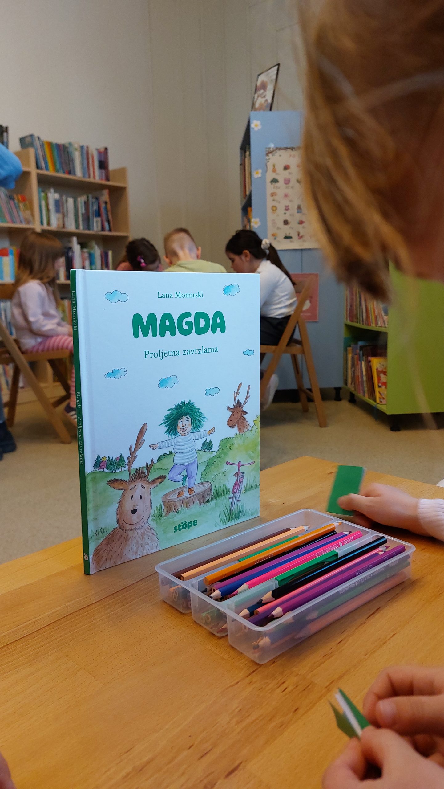 Nakon upoznavanja djeci je ispričana i priča o Magdi, maloj simpatičnoj vještici koja radi kućanske čarolije, koje joj baš i ne idu od ruke. Nakon čitanja slijedila su pitanja i odgovori o priči, kreativan rad kroz igru i dobra zabava. Za sam kraj druženja autorica je predškolcima pokazala i lutku Magde, kojoj su mogli šapnuti svoje želje.